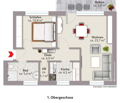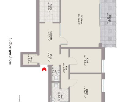 Wohnung 2 im 1. Obergeschoss: EUR 460,00