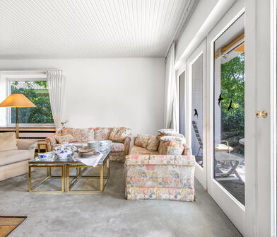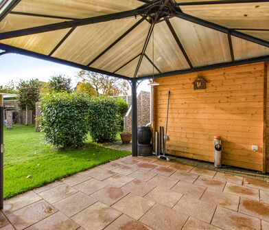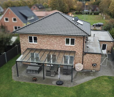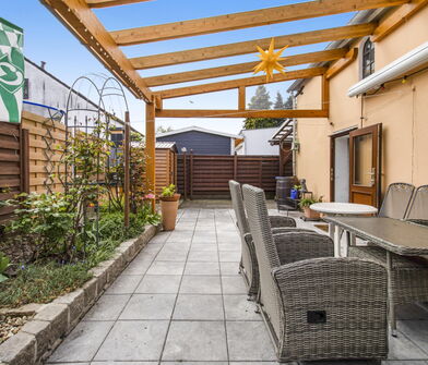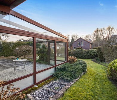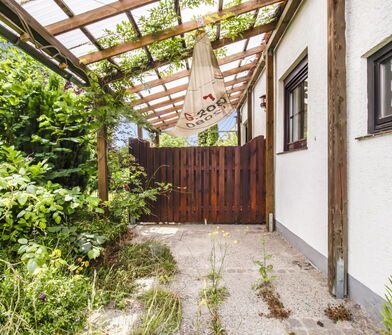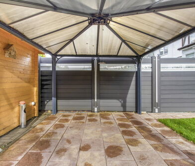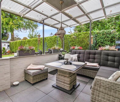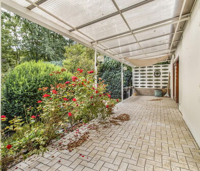- Schöne, überdachte Terrasse mit Blick in den Garten