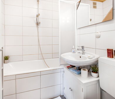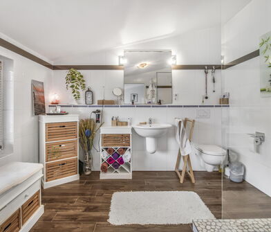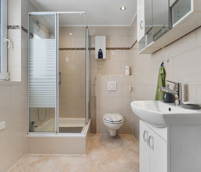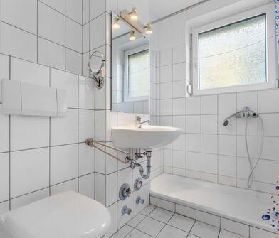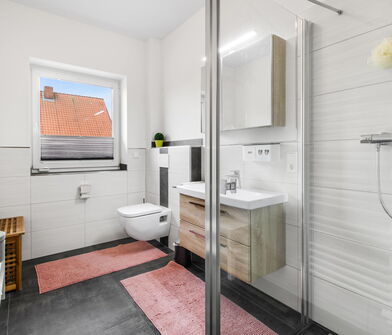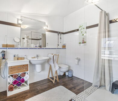- Modernisiertes Badezimmer (Sanierung vor ca. fünf Jahren)