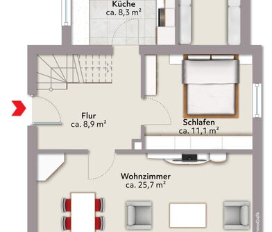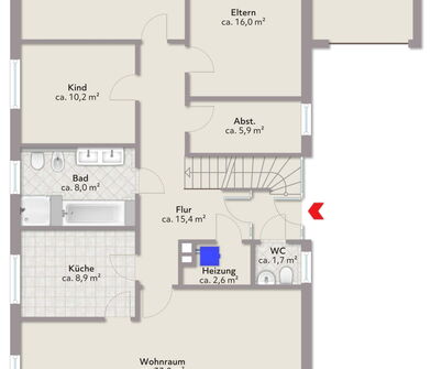 - Holztreppe vorhanden