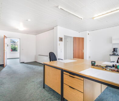 Das Büro, die Lagerhalle und die Doppelgarage können frei übergeben werden, während die Wohnungen derzeit vermietet sind.