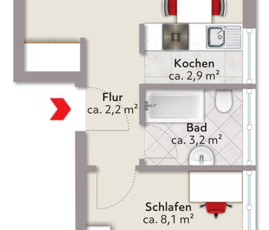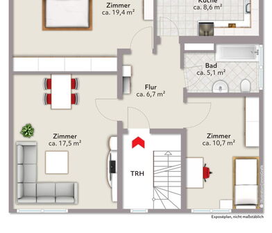 Wohnung 3 im 2. Obergeschoss: EUR 410,00