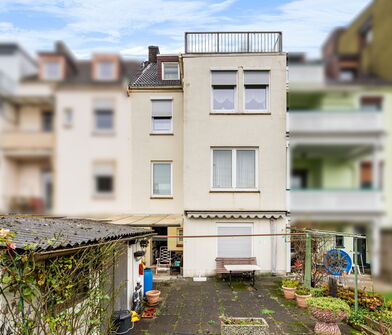 Im Erdgeschoss befindet sich eine Büroeinheit, während die oberen Geschosse insgesamt vier Wohneinheiten beherbergen. Die Immobilie eignet sich damit sowohl zur Eigennutzung – beispielsweise in Verbindung von Wohnen und Arbeiten – als auch solide Kapitalanlage.