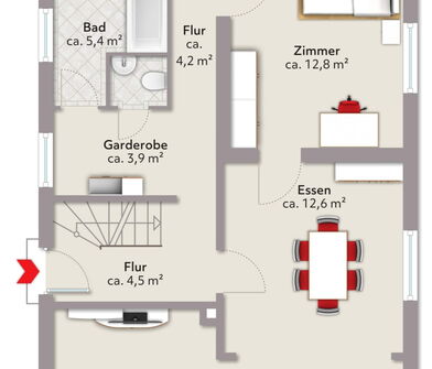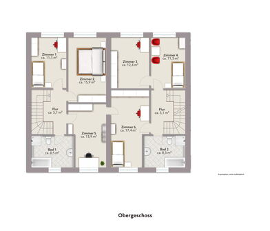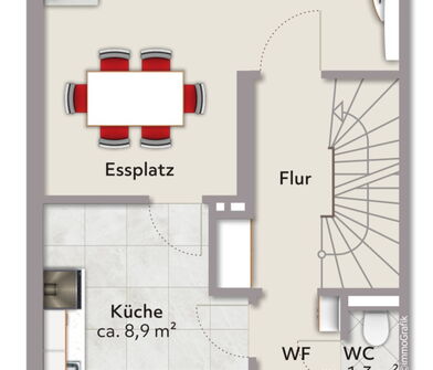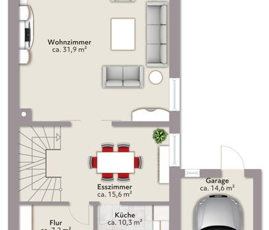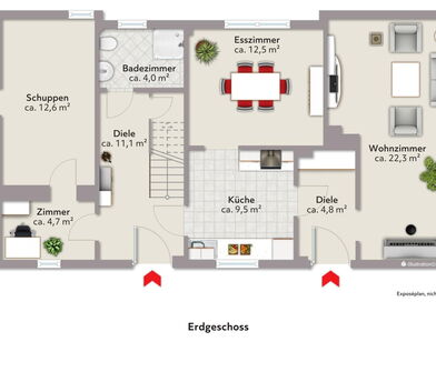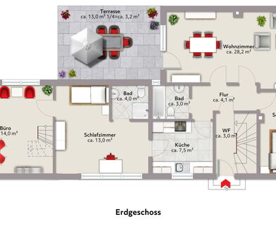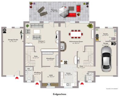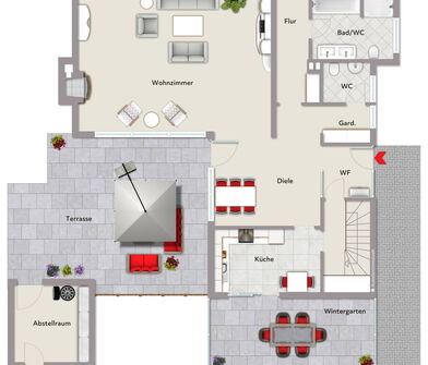 - Mehrere flexibel nutzbare Räume im Erdgeschoss