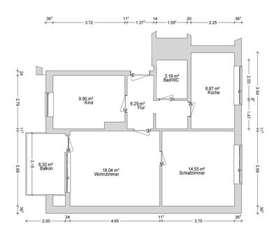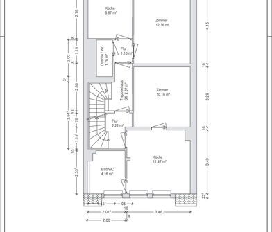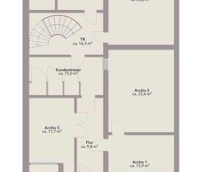 - massive Betondecke vorhanden (bis auf das Dachgeschoss)