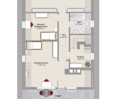 - Spitzboden bietet zusätzliche Staufläche