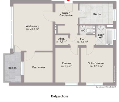 Wohnung im Erdgeschoss (Büro): frei geliefert