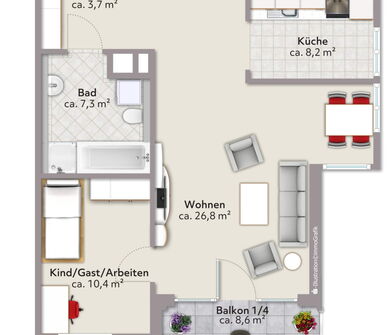 - Kombination aus Wohn-, Arbeits- und zusätzlichen Nebenflächen