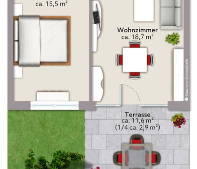 - Terrasse mit Markise vorhanden