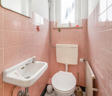 - Gäste-WC im Erdgeschoss mit Fenster (aus dem Baujahr)