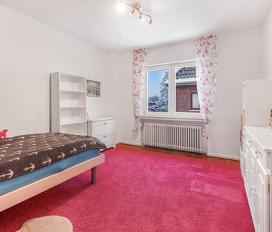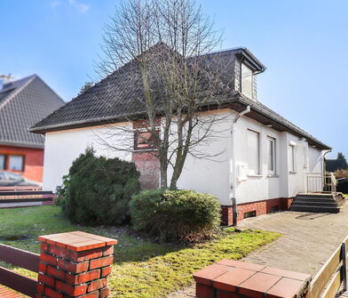 Wer ein solides Einfamilienhaus mit viel Platz für Familie und Hobbies sucht ist bei dieser Immobilie an der richtigen Adresse. Mit nur wenigen Stufen gelangen Sie in das überwiegend stufenlose Hochparterre, welche über drei Schlafzimmer, ein Badezimmer mit Fenster, ein Gäste-WC mit Fenster und einer Küche mit angrenzendem Wohnzimmer verfügt. Im Dachgeschoss entstanden zwei weitere Schlafzimmer sowie ein innenliegendes Duschbad.
