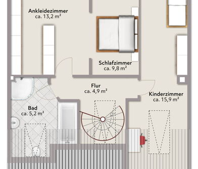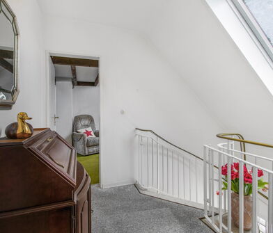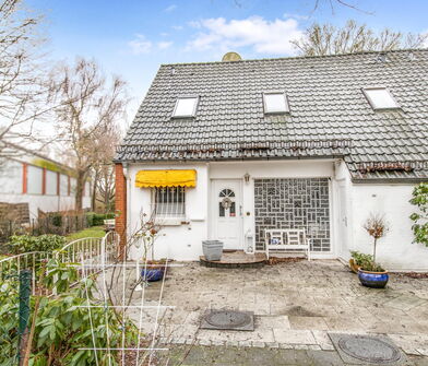 Wer auf der Suche nach einem Reihenhaus ist, welches nicht aussieht wie jedes andere könnte diese Immobilie genau das Richtige für Sie sein: Auf knapp 111 m² finden sich Platz für ein großes Wohn-und Esszimmer mit Blick in den Garten, eine Küche mit angrenzender Speisekammer, einem Gäste-WC, zwei Schlafzimmer und ein Vollbad mit Fenster.
