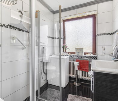 - modernisiertes Badezimmer mit Dusche aus 2018