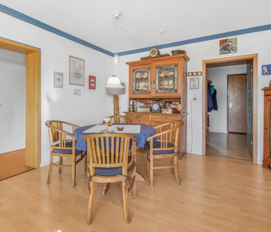 Das Herzstück der Wohnung ist der großzügige Wohn- und Essbereich, welches durch große Fensterflächen viel Tageslicht erhält. Von hier aus gelangen Sie direkt auf den Balkon, der einen angenehmen Außenbereich zum Entspannen bietet.
