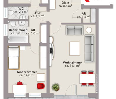 Die gepflegte 3-Zimmer-Wohnung befindet sich in einem Mehrfamilienhaus aus dem Baujahr 1981 und bietet mit einer Wohnfläche von ca. 87,3 m² ein großzügiges und gut durchdachtes Raumkonzept. Zur Wohnung gehören ein eigener Garagenanteil sowie ein separater Kellerraum, die den Wohnkomfort zusätzlich unterstreichen.