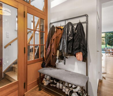 Diese Immobilie ist ein wahres Schmuckstück und eine ideale Gelegenheit für junge Familien. Die derzeitigen Eigentümer haben das ursprüngliche Siedlungshaus zu einer modernen Wohlfühloase umgewandelt. Im Erdgeschoss befinden sich ein großzügiges Wohn- und Esszimmer mit Kaminofen und eine offene Einbauküche - der perfekte Platz für die gesamte Familie. Neben dem Wohnzimmer verfügt das Erdgeschoss über zwei Schlafzimmer und ein Duschbad mit Fenster.