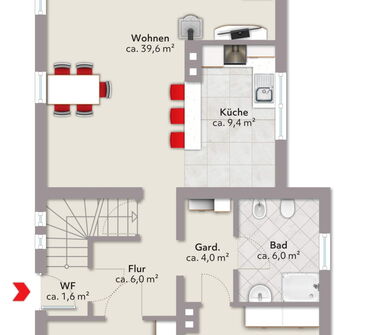 - Holzböden im Wohnzimmer und Küche aus 2020